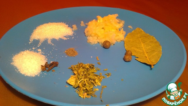 Добавляем: сахар, лавровый лист, гвоздику, перец душистый, кинзу, соль, черный перец.