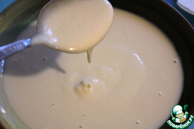 Размешать вилкой или лопаточкой яйцо с ледяной водой, затем постепенно ввести муку. Должна получиться масса, по густоте похожая на жидкую сметану.