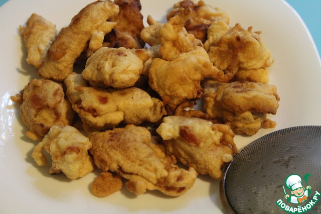 | Темпура - популярная категория японских блюд из рыбы, морепродуктов и овощей, приготовленных в кляре и обжаренных во фритюре. Мясо таким способом готовится очень редко, но я решила предложить вашему вниманию вариант приготовления темпуры из бекона. Закуска получилась аппетитная, хрустящая и сытная. Рекомендую. За рецепт искренне благодарю Ольгу Худинг. |