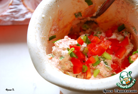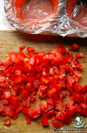 Перец очистить от семян и мелко порезать, отложить 1/3 в сторону.