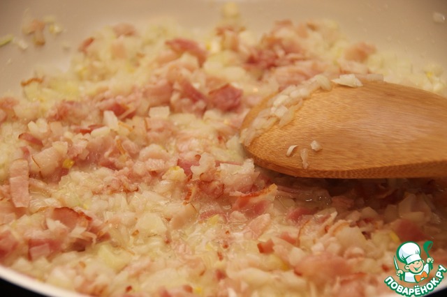 Обжариваем бекон и лук 4-5 минут