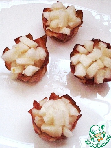 Теперь самая простая закуска:хрустящий бекон с грушей.