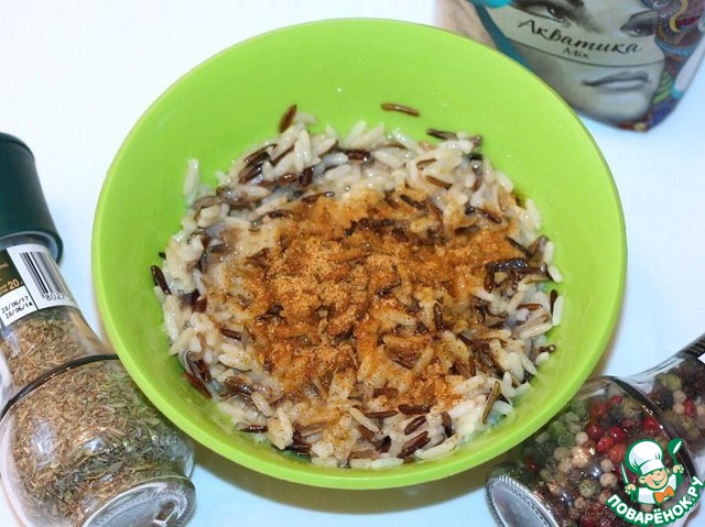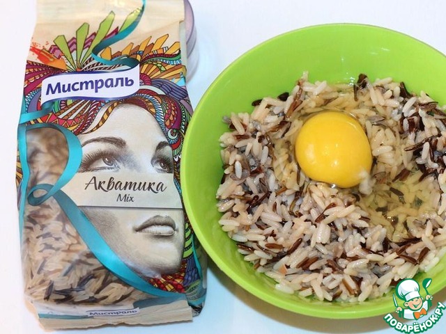Заливаем рисовую смесь приготовленной яичной смесью.