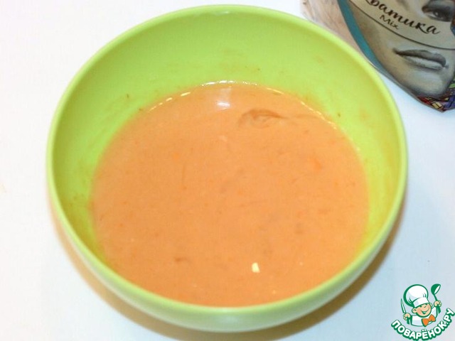 Смешиваем сметану, томатную пасту и яйцо, немного присаливаем. Можно соль и не добавлять, так как бекон очень соленый.