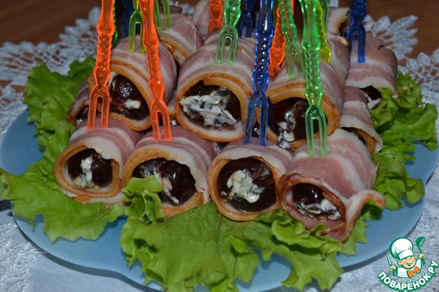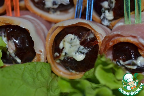 | Давно на просторах Интернета нашла этот рецепт. Уж очень мне хотелось попробовать его: как же будут сочетаться сладкие финики и бекон. В рецепте не разочаровалась, поэтому, дорогие поварята, делюсь этим изысканным, необычным и очень вкусным рецептом с ВАМИ! |