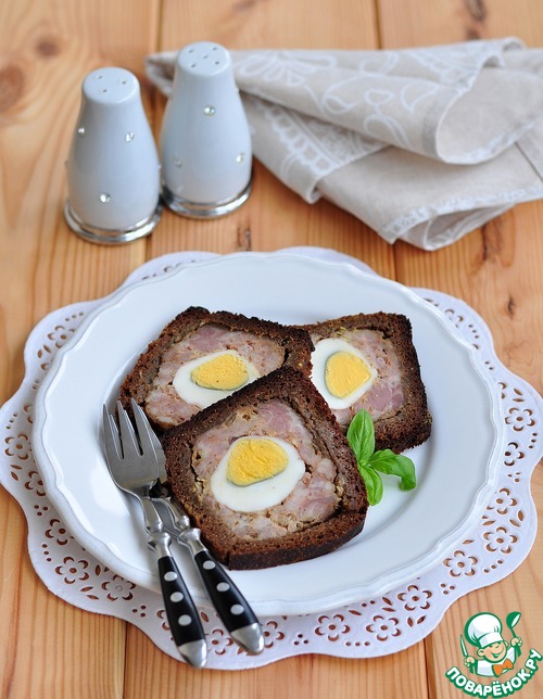 Нафаршировать буханку, вовнутрь я положила отварное куриное яйцо.