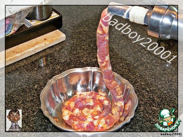 Но, чтобы приготовить колбаску надо мясо. Свежее и, желательно, жирное. Все добавки, типа курицы, говядины и других мясных добавок сразу отбрасываются в топку - домашняя колбаса должна быть свиной.