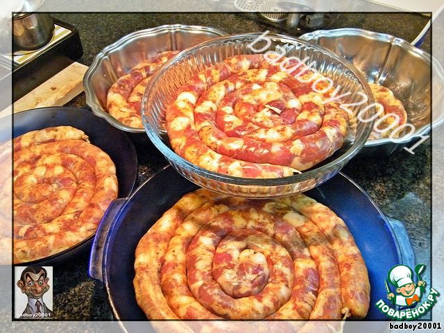 Теперь разогреваем духовку до 190 градусов и отправляем колбасу в духовку на 50-60 минут.