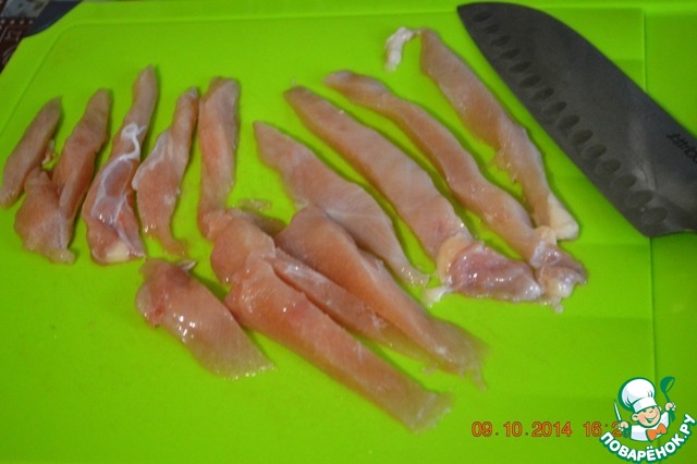 Порезать полосками (примерно 1 см)