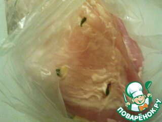 Выкладывем свинину в целый полиэтиленовый пакет.