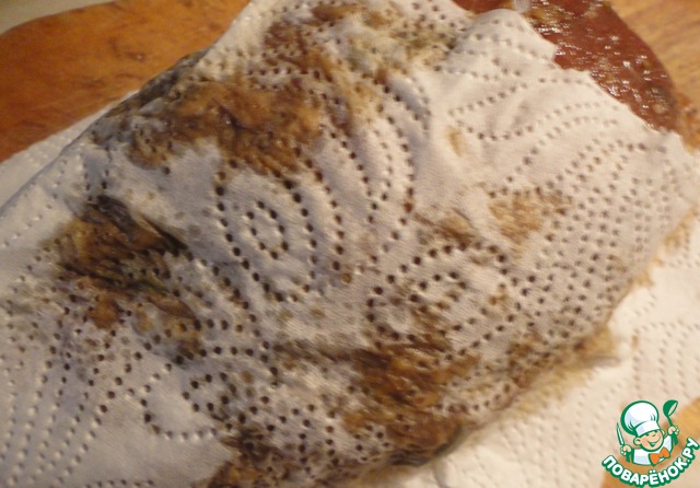 Мясо вынимаем из маринада. Промакиваем бумажными полотенцами.