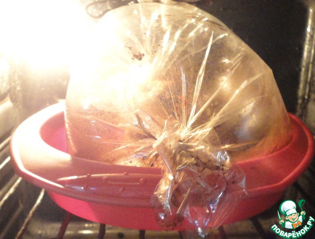 Запекаем в течение 60 минут при 200 градусах. Если запекаете более крупный кусок мяса, чем у меня, то увеличте время до 1,5-2 часов, в зависимости от размера.