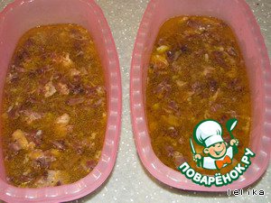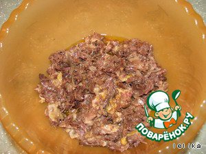 Благополучно присоединить к этой вкусно пахнущей субстанции мяско и перемешать