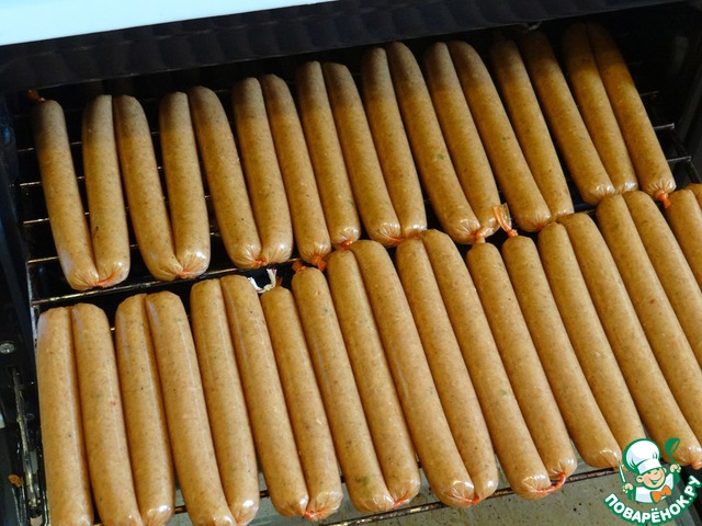 Выложить готовые сосиски на противень и оставить там при самом низком жаре на 1 час;