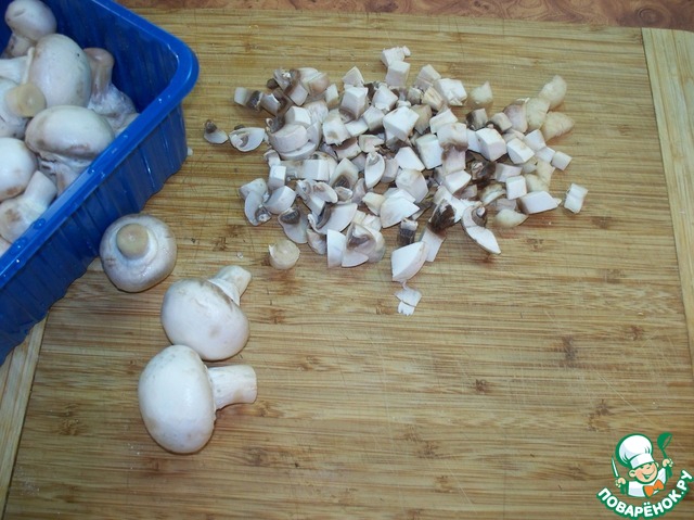 Итак, грибы моем и мелко нарезаем кубиками.
