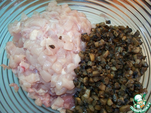 Пока грибы обжариваются, мы занимаемся курицей.