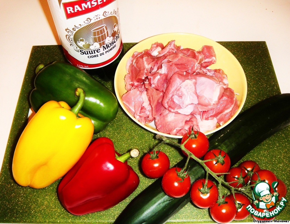Основные ингредиенты блюда. В данном случае филе телятины уже нарезано кусочками. Если у вас целый кусок, то нарежьте его кубиками среднего размера.
