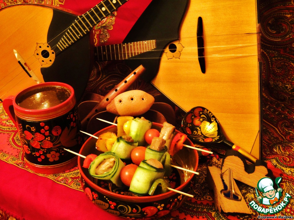 | Многие думают, что балалайка — инструмент народный, у которого нет автора. Это отчасти правда. Под «балалайкой» раньше понимали целую семью разношерстных музыкальных инструментов разной формы (не только треугольной, но даже в овальной) и с разными строями. И только в конце позапрошлого века замечательный мастер Василий Андреев создал нынешний образ балалайки — узнаваемый во всeм мире символ музыкальной России. Казалось бы, народная музыка должна быть простой, однако, мало какой стиль, мало какое направление может похвастаться таким богатым набором инструментов и яркой палитрой звуков: домра, трещeтки, свистульки и сопелки, варган, деревянные ложки... Нет, всего и не перечислить! Кстати, о ложках. Точнее, о еде. Давайте попробуем приготовить блюдо, кулинарная гамма вкусов которого будет яркой, необычной, собранной со всех концов страны, но непременно вкусной и сытной. |