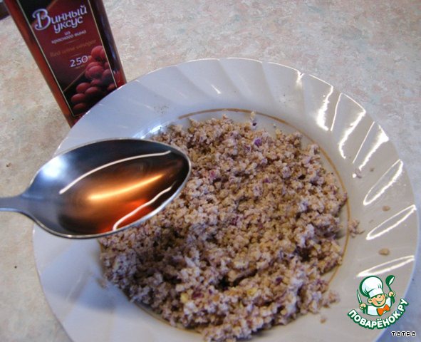 Все тщательно перемешиваем, если получается густовато, то добавляем оливковое масло. Даем полчаса постоять в холодильнике.