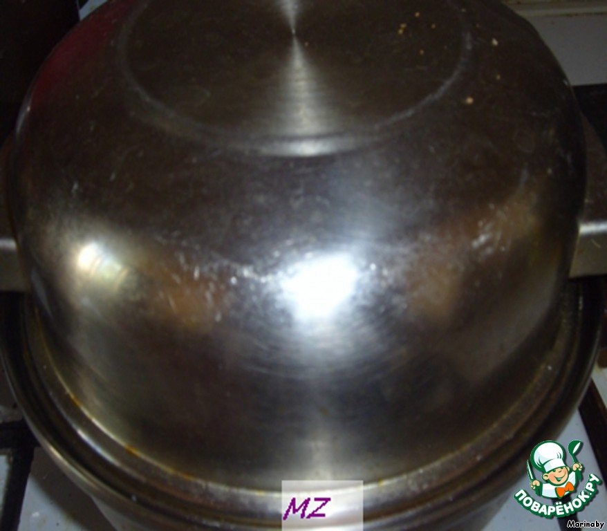 Накрываем все это крышкой и на несколько минут на небольшом огне даем разомлеть сыру.