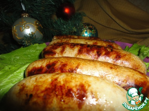 Это готовый полуфабрикат. Такие колбаски можно жарить дома на гриле или на природе на углях. Можно забросить в морозильник и всегда будете иметь возможность удивить неожиданных гостей. Я их зажарила на гриль-сковороде.