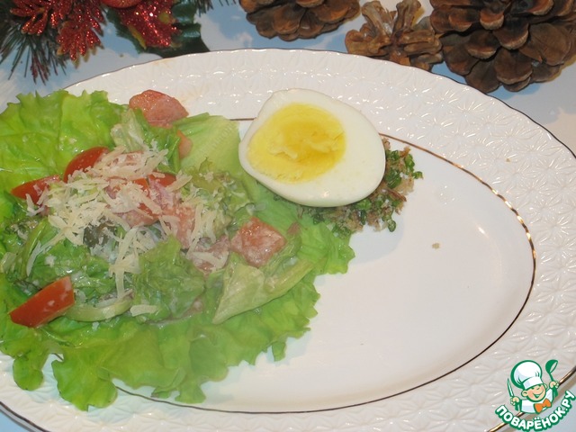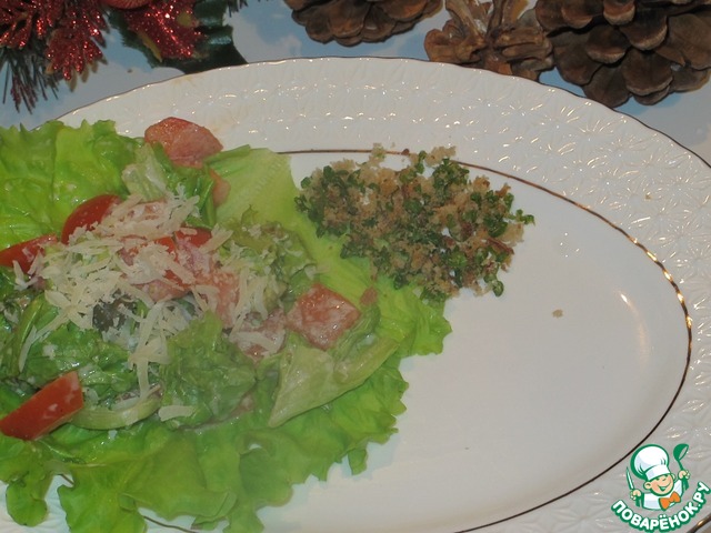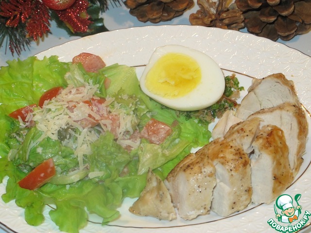 | В классическом "Цезаре" многим не нравится, что от соседства с горячей курицей листья салата вянут и жухнут. Здесь же курица - отдельно, салат - отдельно. Такой "Цезарь" легко превратить в горячую закуску или основное блюдо с гарниром. |