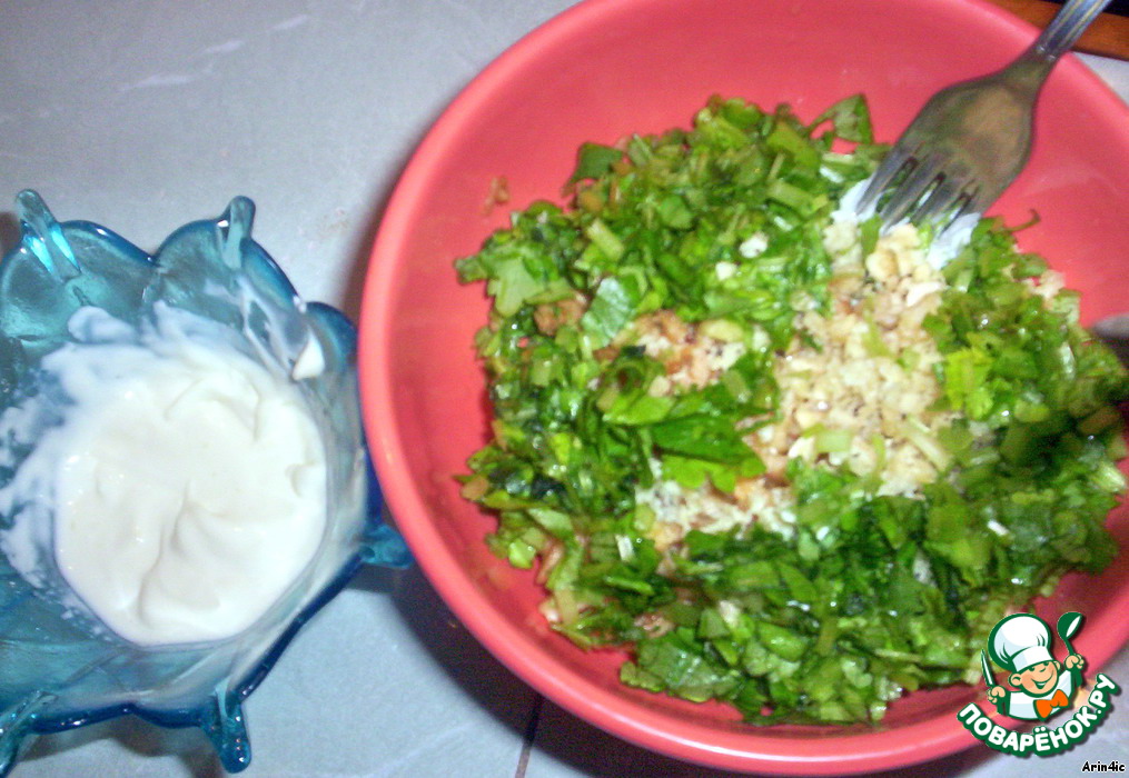 | Предлагаю Вашему вниманию закуску по мотивам знаменитого салата "Вальдорф". Источник рецепта-интернет. |