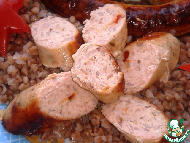 Домашняя колбаса из курицы, свинины, индейки и говядины с гречкой и сливками