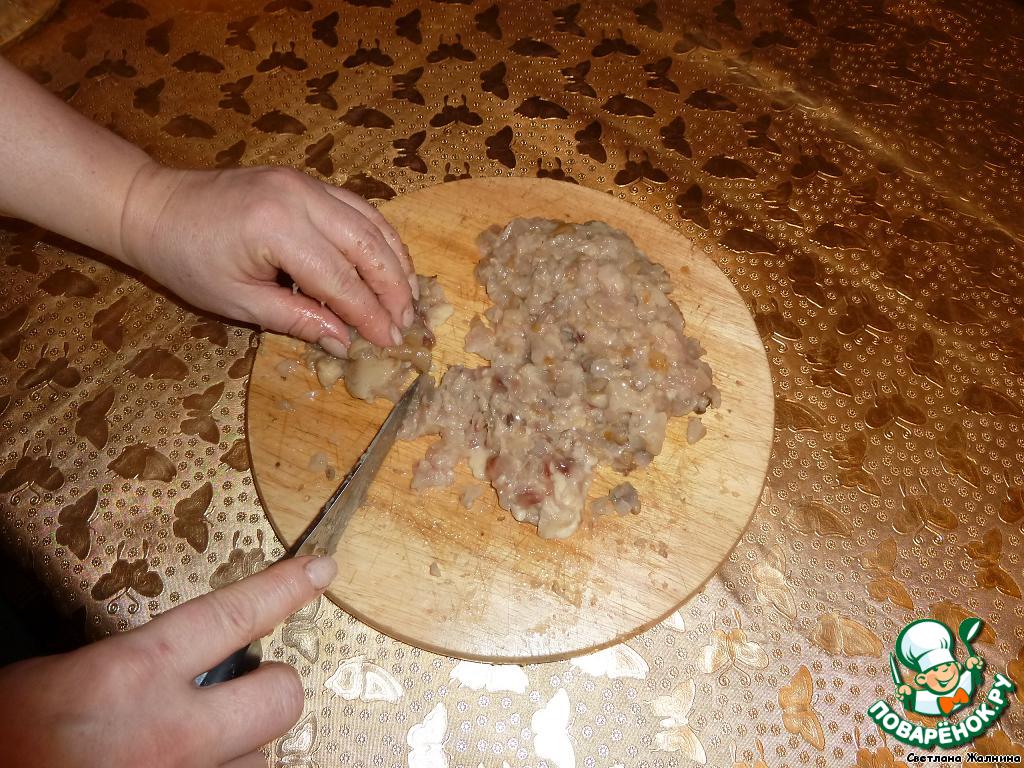 Мякоть острым ножом режем на маленькие кусочки (чем меньше, тем лучше)