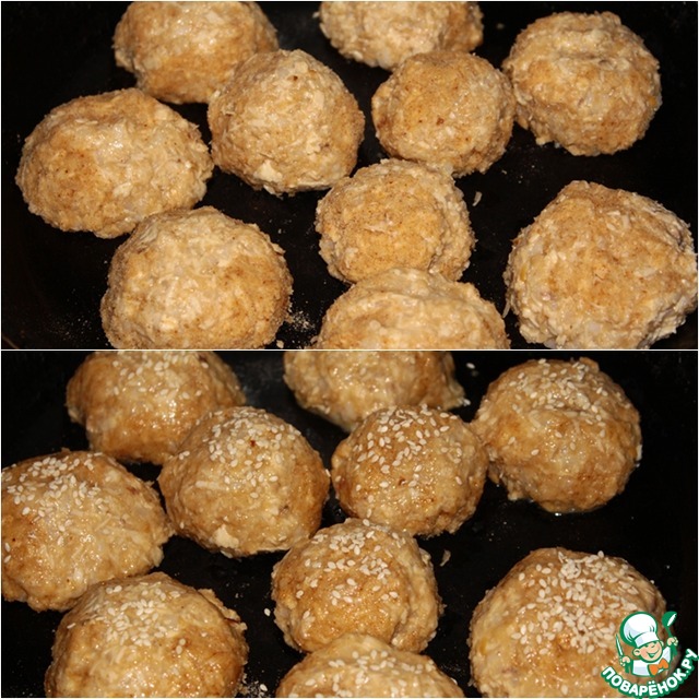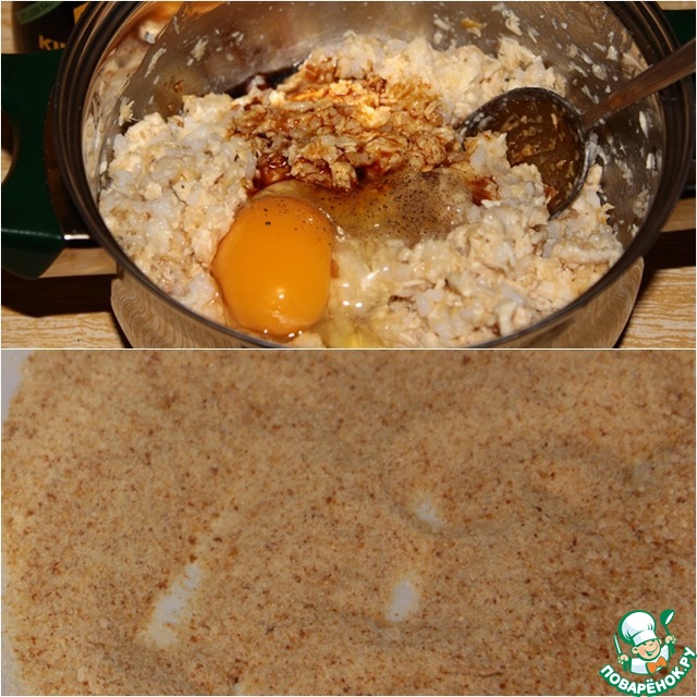 Все перемешать. Разделить массу на 10 частей. Каждую часть оформить шариком, обвалять в панировочных сухарях.