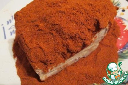 И хорошенько обваливаем в смеси перцев со всех сторон.