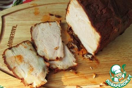 Мясо получается мягкое, но достаточно плотное, хорошо нарезается даже тонкими ломтями.