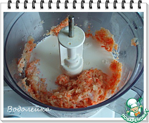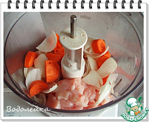 Приготовить фарш из мяса кролика, морковки и лука. (при помощи блендера или мясорубки).