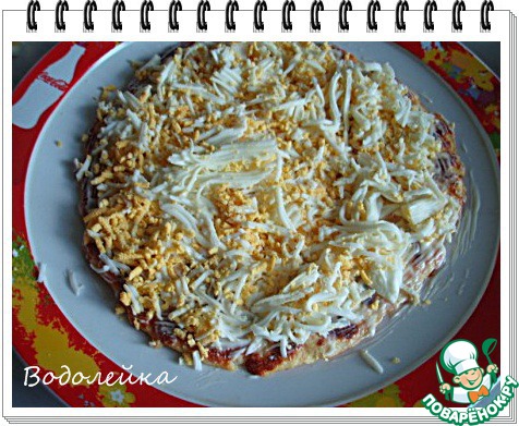 Сверху натереть яйца (у меня на один блинчик уходило 1.5 яйца). Но это количество можно регулировать (потереть больше или меньше).
