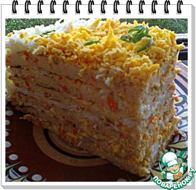 | Печеночный торт наверное готовит каждая хозяйка. Но в этом рецепте я предлагает приготовить не менее вкусный вариант закусочного торта - блинный торт из кролика. |