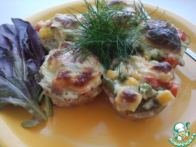 | Маленькие корзиночки из фарша с начинкой из овощей. Я довольно часто использую замороженные смеси в готовке, вот и для этого рецепта взяла"Мексиканскую смесь". Получаются маленькие, вкусные корзиночки, которые хорошо подавать как закуску. |