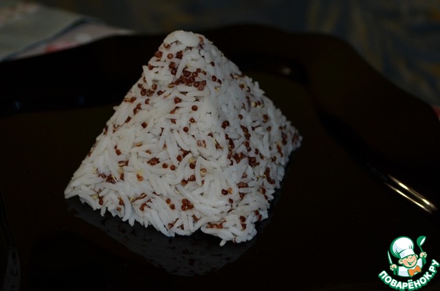 При подаче выложить на блюдо рис, уложив его пирамидкой.