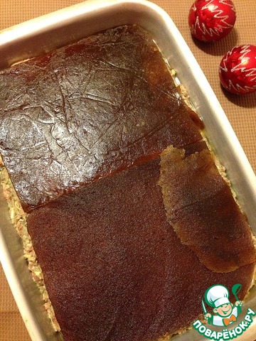 | Как Вы относитесь к сочетанию мяса со сладкими продуктами? Как Вам запеченная курица с шоколадным соусом? Или мясо, запеченное в сладкой глазури? Или мясо с мармеладом, которое хочу сегодня предложить Вам я? Те, кто не любит сладковатого вкуса мяса, думаю, этим рецептом не заинтересуются. Ну а те, кто очень даже не прочь, прошу в гости! Я решила приготовить это блюдо в виде закуски, оформила как пирожные и так и назвала. То-то гости за новогодним столом удивятся, обнаружив под видом пирожного мясную закуску! |