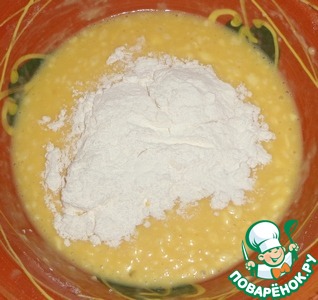 Растопить маргарин, дать немного остыть и добавить яйца. Взбить миксером. Добавить соду.