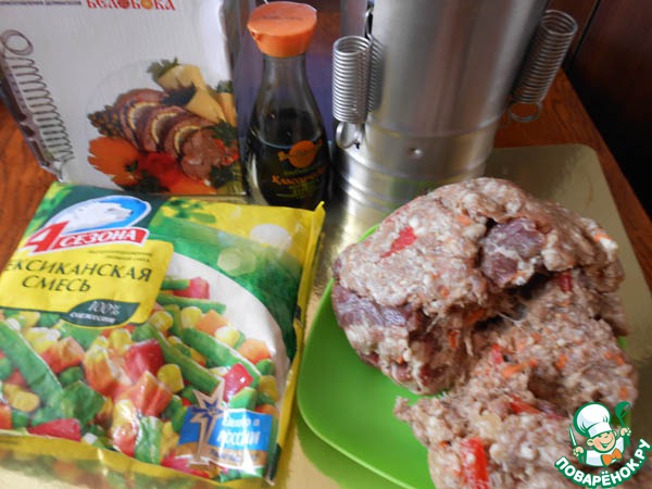 Овощную смесь разморозить, добавить пару столовых ложек соевого соуса, перемешать.