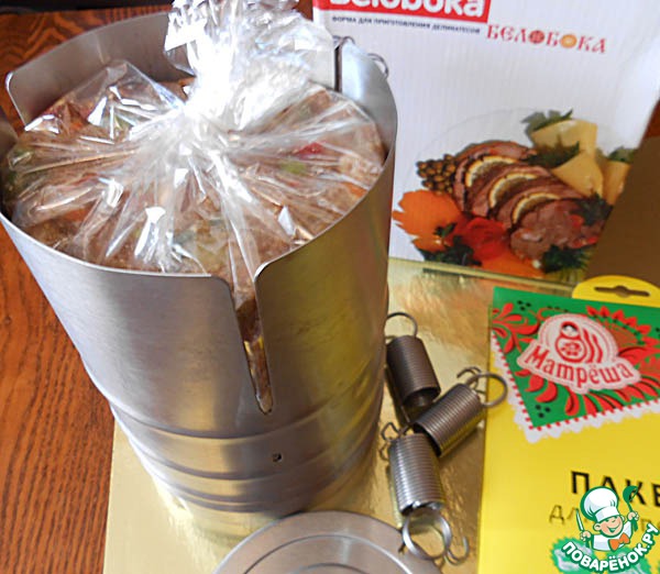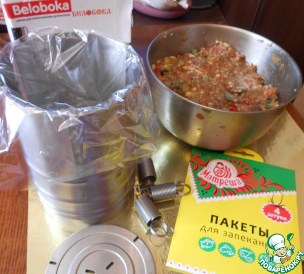 Ветчиницу закрыть, взведя пружины на максимум Кое-где в технологических прорезях сделать проколы мешка для запекания.