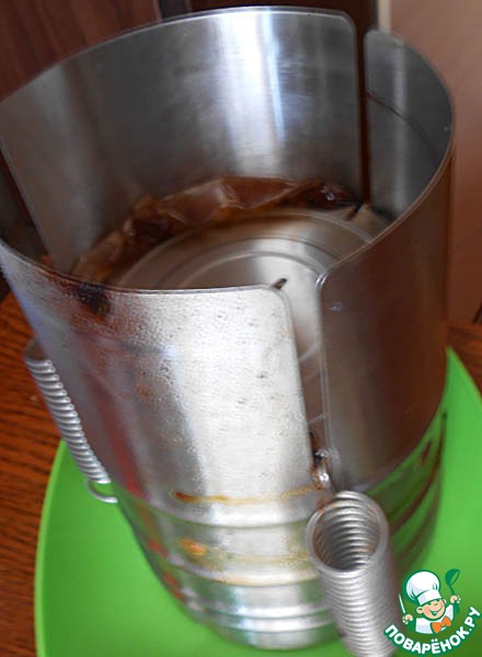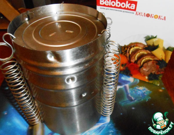 Через 1,5 часа ветчиницу извлечь (мы видим, как просели пружины) и оставить охлаждаться при комнатной температуре, а затем ещё и в холодильнике.
