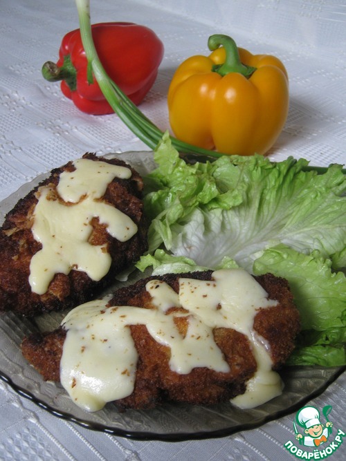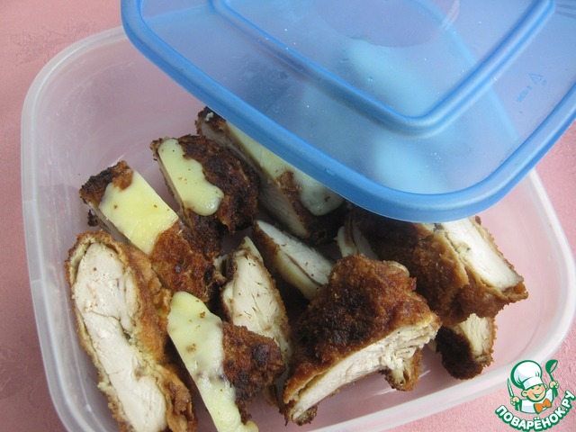 | Нежное и сочное мясо куриной грудки, а сверху вкусная корочка и расплавленный сыр. Можно взять это блюдо с собой на пикник в качестве перекуса. |