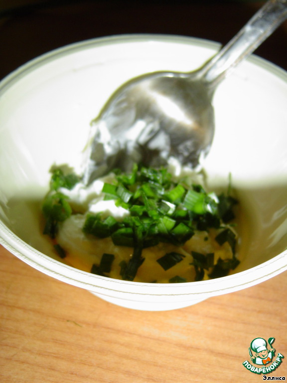 В центр помещаем творожный сыр с чесноком
