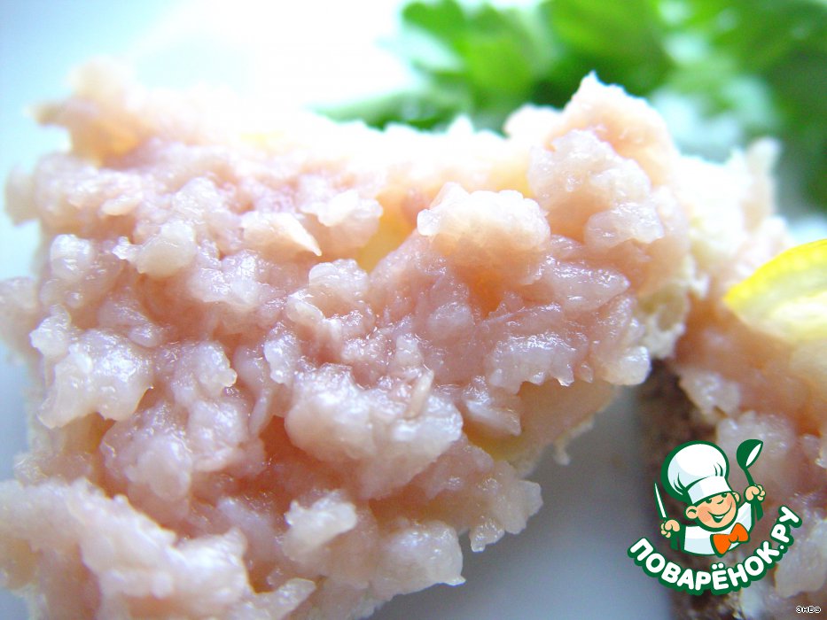 Полученное филе прокручиваем через мясорубку. Автор предлагает именно такой способ. Я думала, не разбить ли его в блендере, но решила следовать оригиналу, и оказалось, что так в самом деле лучше. Фарш получается крупинками, что по текстуре приближает его к икре