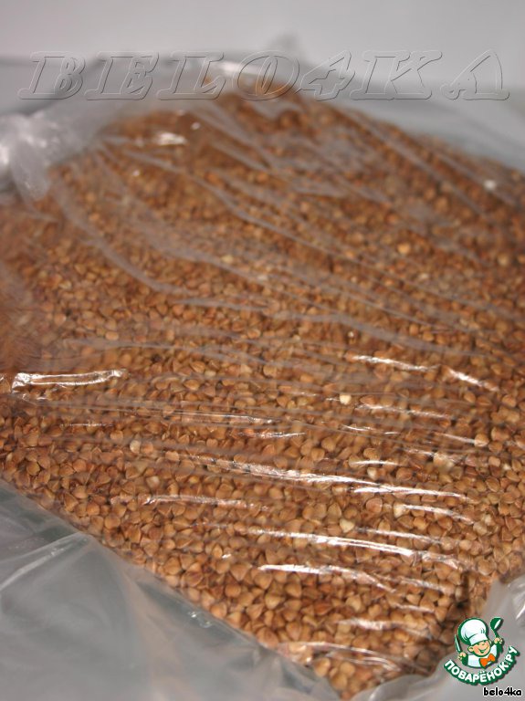 И ставим под гнет. У меня ничего квадратного не нашлось, для равномерной нагрузки насыпала в пакет гречку и придавила ею, а сверху еще положила разделочную доску для пущего весу. Ставим в холодильник на часок, достаем, переворачиваем на блюдо, снимаем пленку...