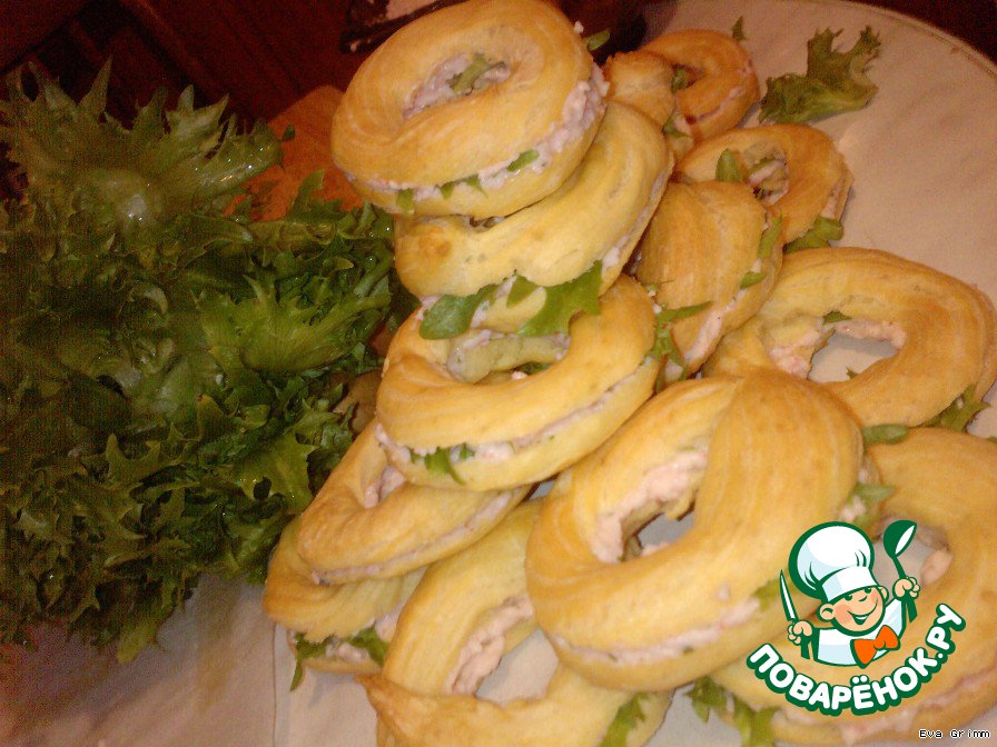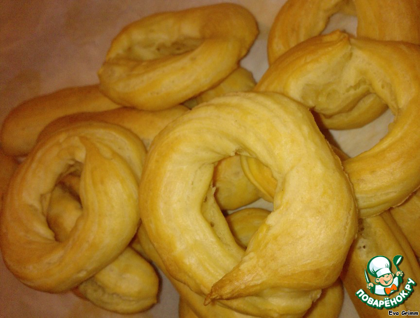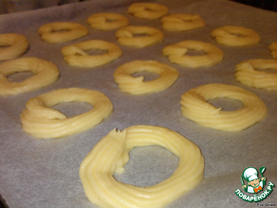 Тесто готовила как и в прошлый раз http://www.povarenok.ru/recipes/show/45124/ Выкладываем его бубликами на пергаментную бумагу...