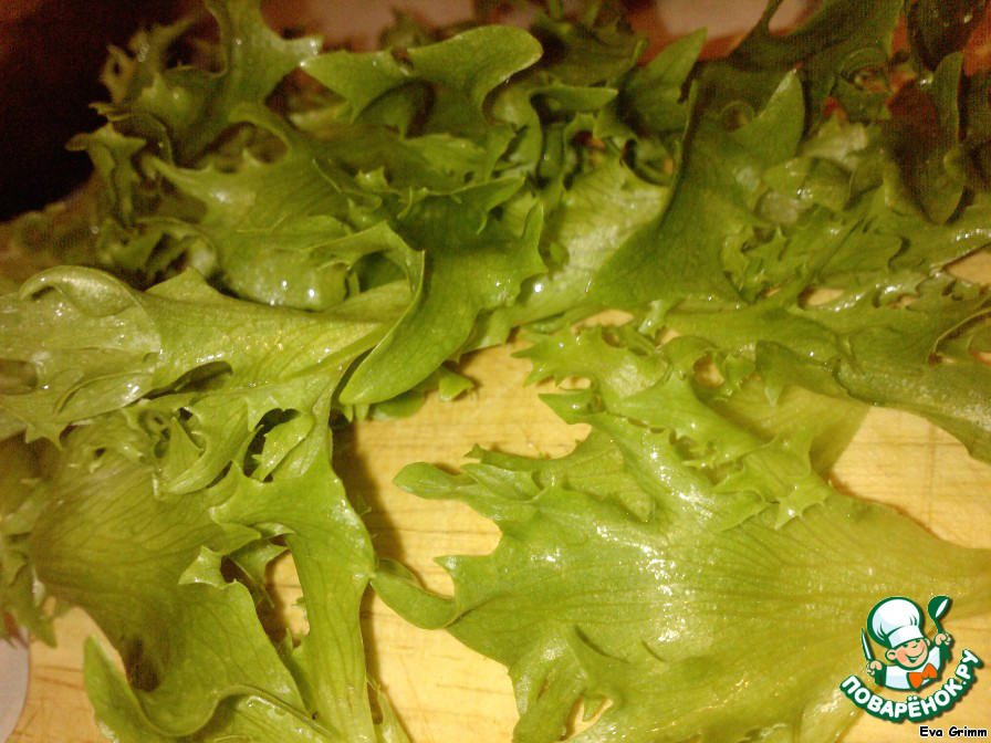 Тем временем листики салата нарезаем или рвем на мелкие кусочки