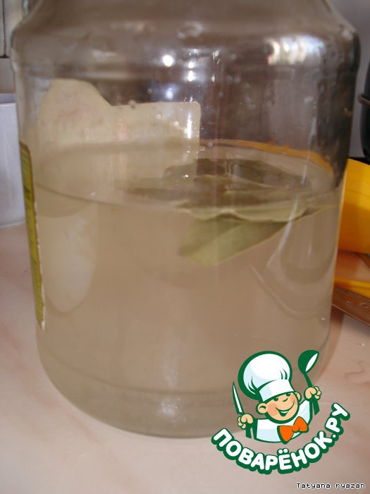 В 0,5л. теплой воды добавить соль, сахар, перец, лавровый лист. Тщательно размешать.