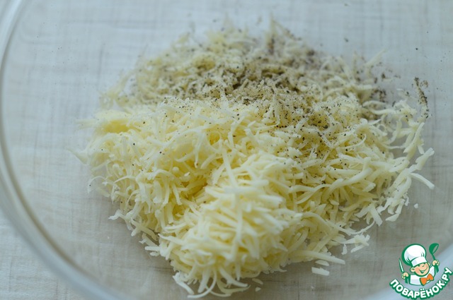 2. Сыр натереть на мелкой терке, добавить соль, перец.